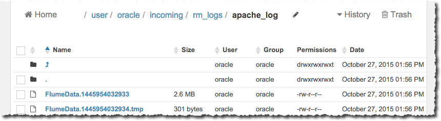 15/10/27 13:53:53 INFO hdfs.BucketWriter: Creating /user/oracle/incoming/rm_logs/apache_log/FlumeData.1445954032932.tmp