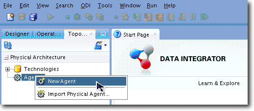 Once you’ve completed these steps, you’ll go through the process of creating your agent within ODI Studio both within the Physical and Logical Architecture.