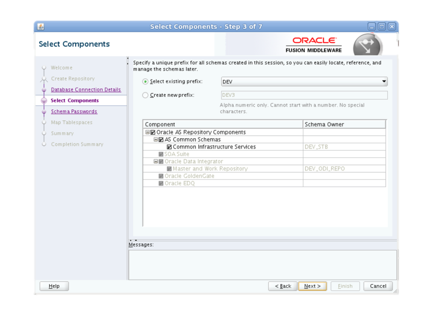 You’ll want to make sure that you have DBA privileges for this step as you’ll be creating new schemas and tables in the database that will require these permissions. The wizard does give you the option of creating the scripts for the DBA to use later if necessary, although it may be best to work with the DBA directly as you create the repositories.