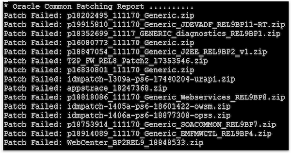 However, this doesn't tell you what caused the failure. Next we will want to look into the oracle_common_generic_patches.log to gather more information.
