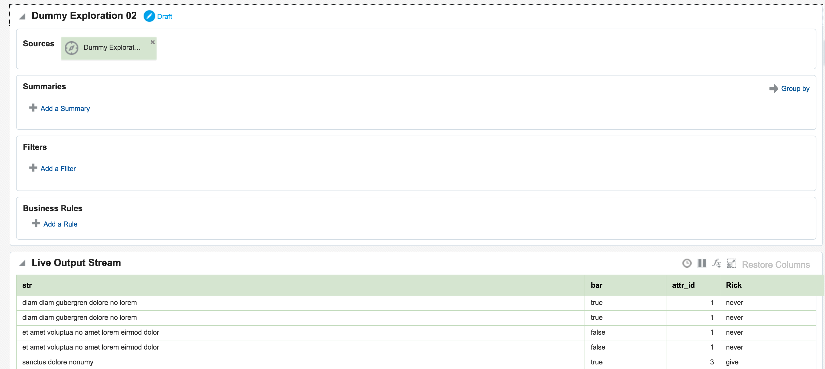 Assuming the Stream is created successfully you are then prompted to create an Exploration from where you can see the Stream in realtime: