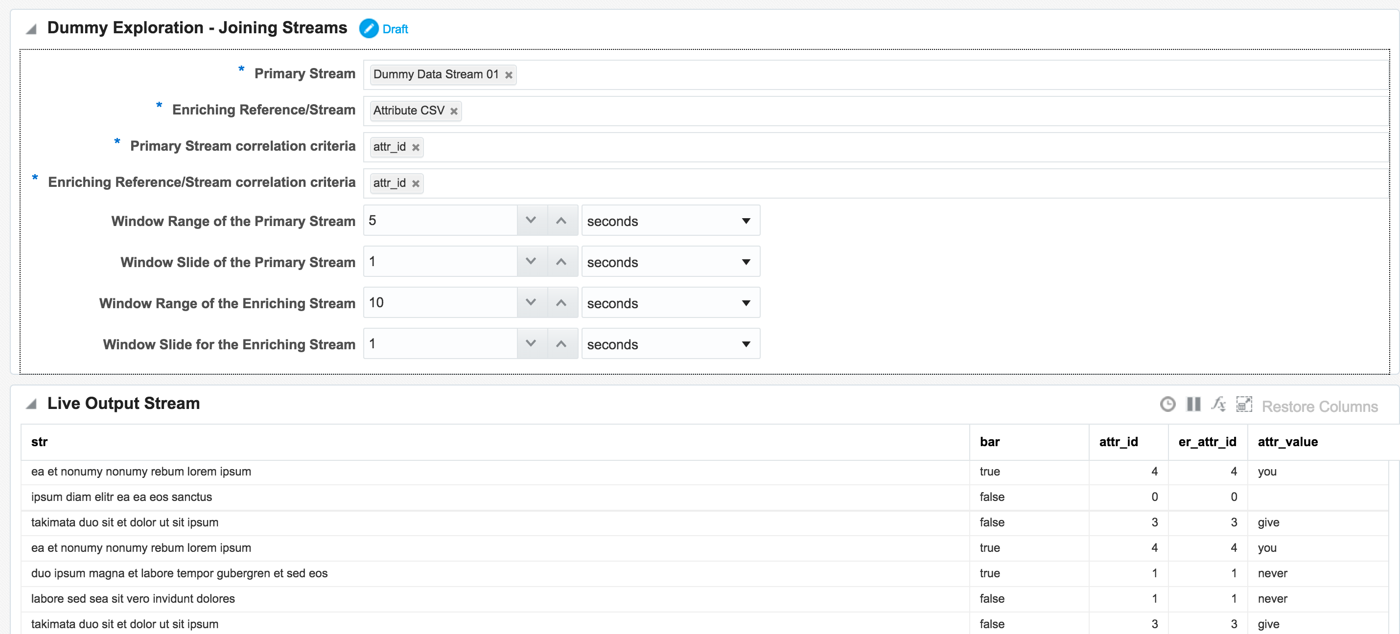 attr_id would be matched. Unless both streams happen to be in sync on the same attr_id from the outset then this isn’t going to happen that often, and certainly wouldn’t in a real-life data stream.
