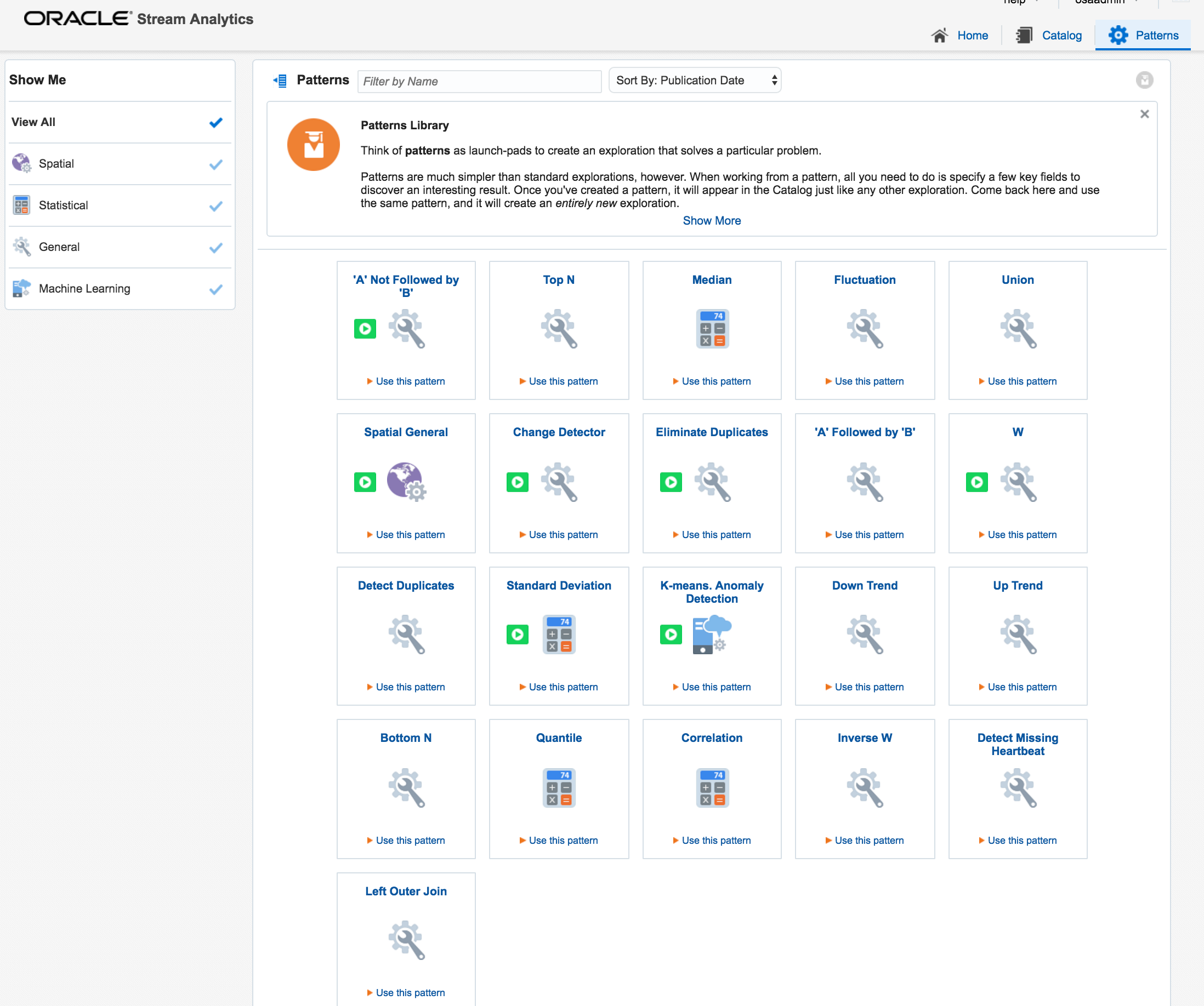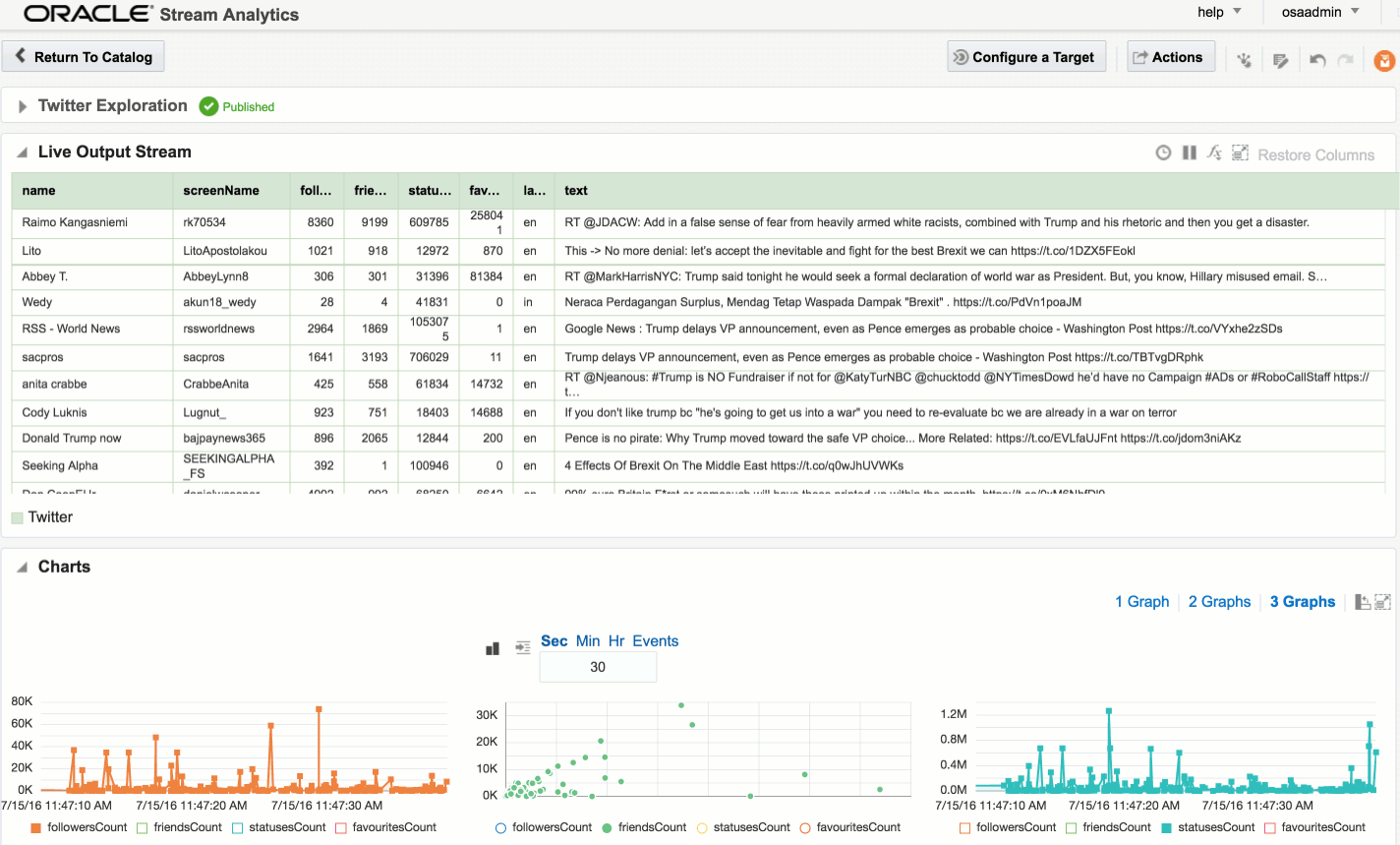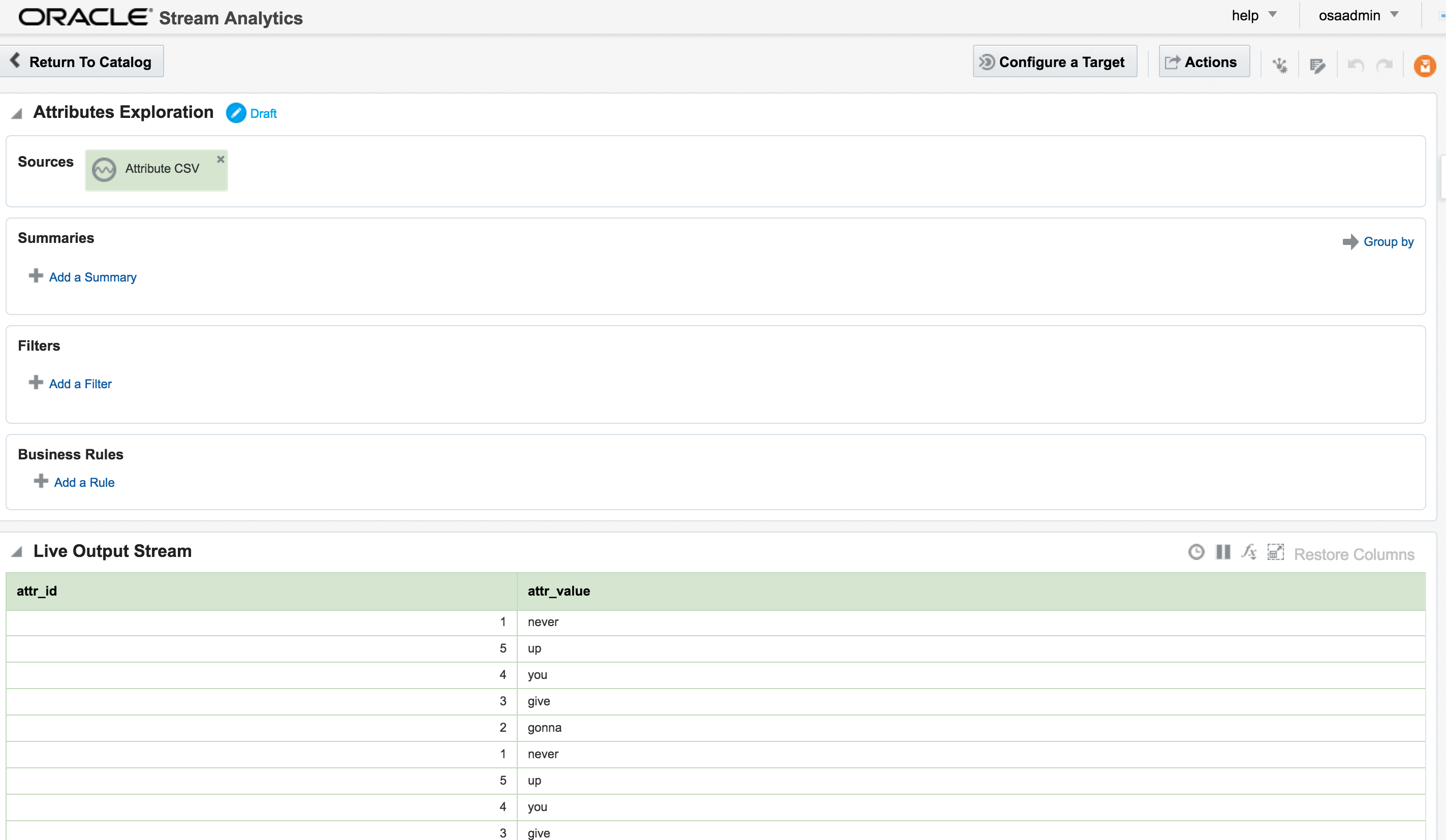 Oracle Stream Analytics (OSA) is a graphical tool that provides “Business Insight into Fast Data”. In layman terms, that translates into an intuitive web-based interface for exploring, analysing, and manipulating streaming data sources in realtime. These sources can include REST, JMS queues, as well as Kafka. The inclusion of Kafka opens OSA up to integration with many new-build data pipelines that use this as a backbone technology.