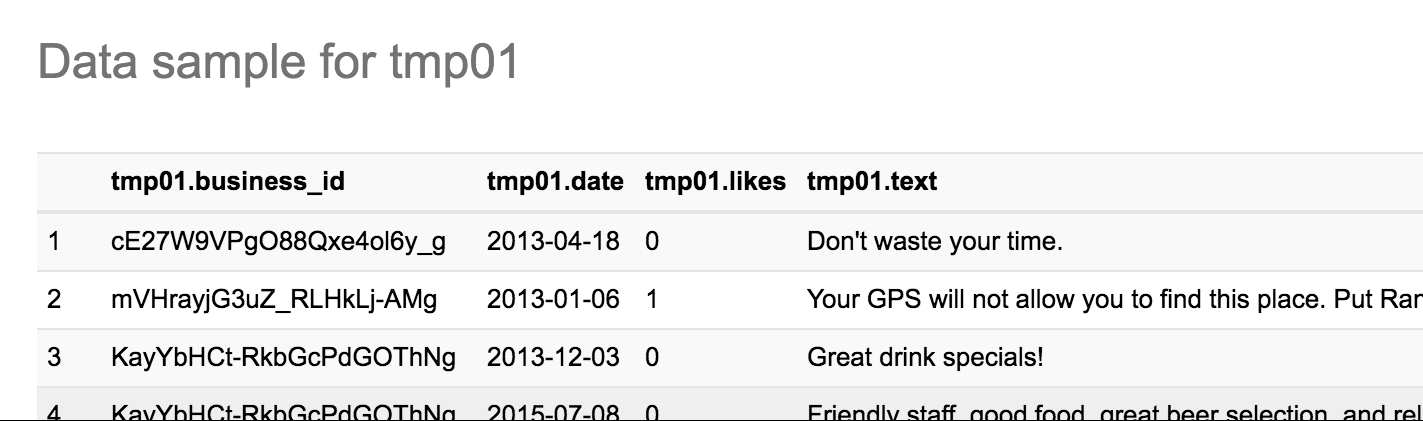Then I declare this as a temporary table, which enables me to subsequently run queries with SQL against it
