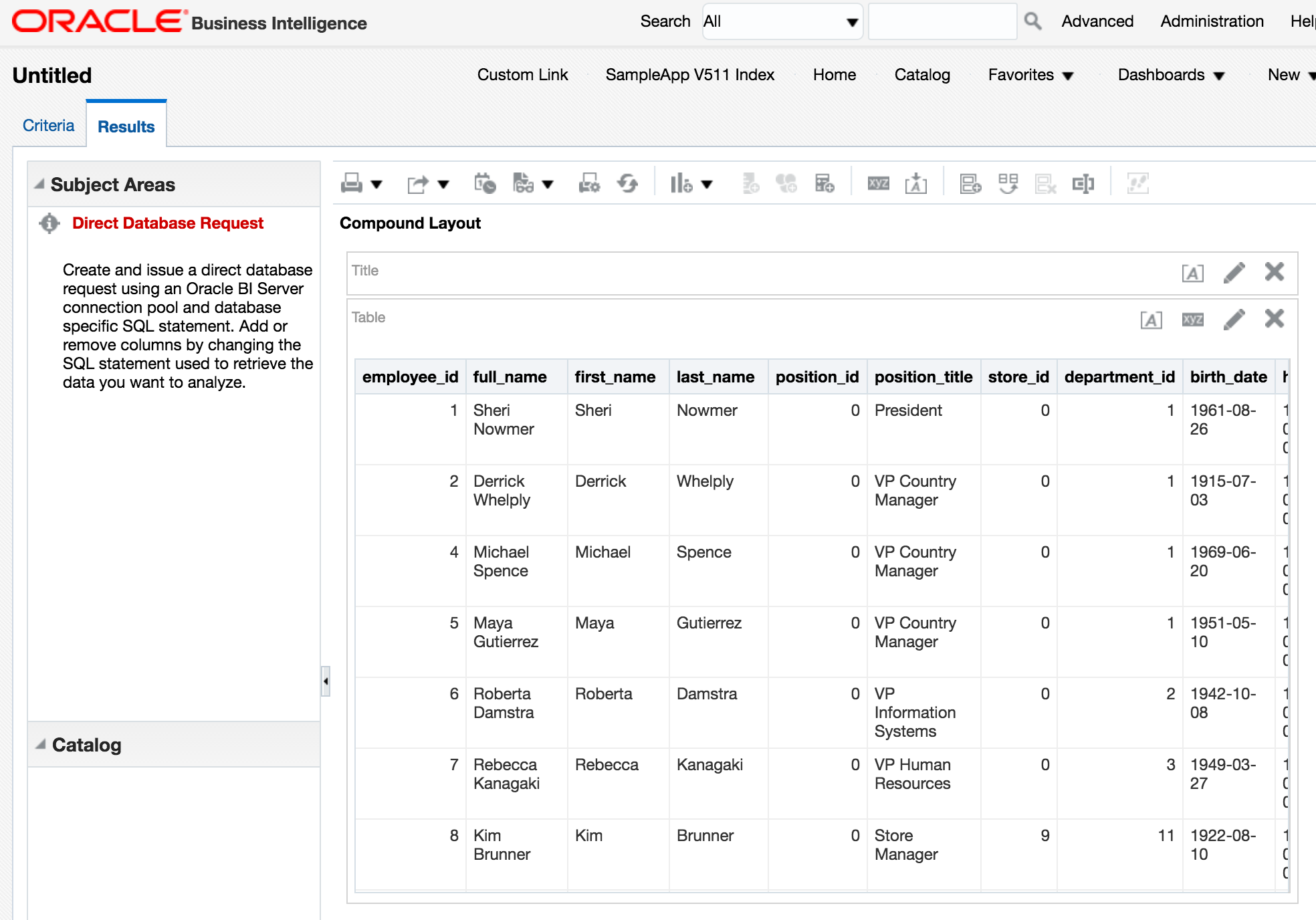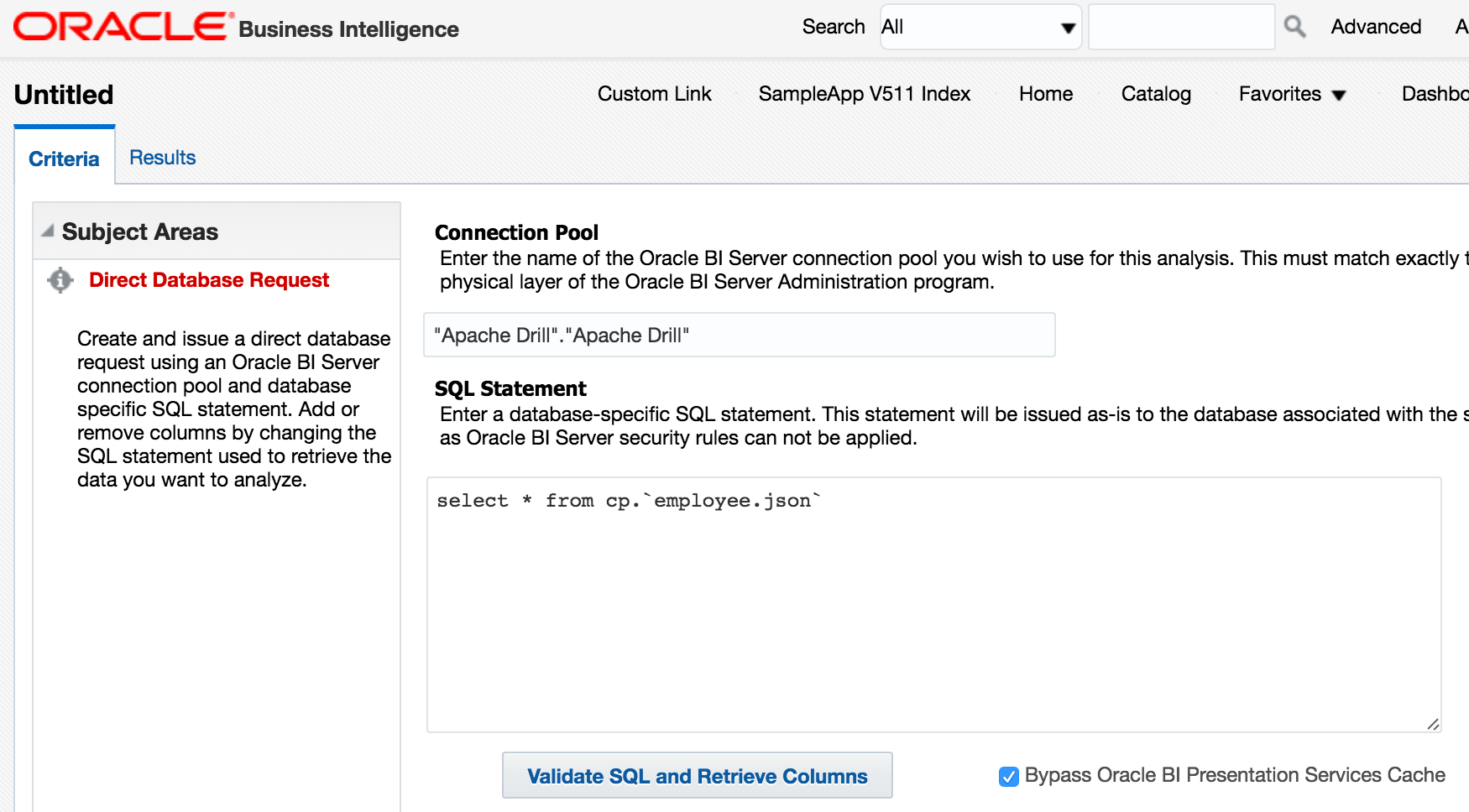 Now to try it out! In Answers I build a Direct Database Request: