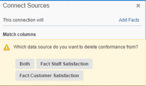 This is not desirable because, due to the presence of a circular join, we run the risk of double counting. When I try to break the join between the two fact tables, DVD asks which data source I want to break conformance from.