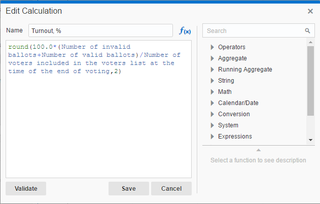 To check this I need one more measure - Turnout, %. It shows how many of registered voters actually voted. I can create this field without leaving visualisation mode. Cool.