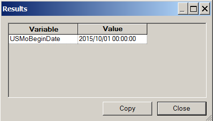 If I click OK, I can check the values in the display window by clicking the dropdown for the Start Date prompt I just created.