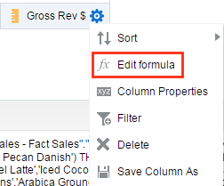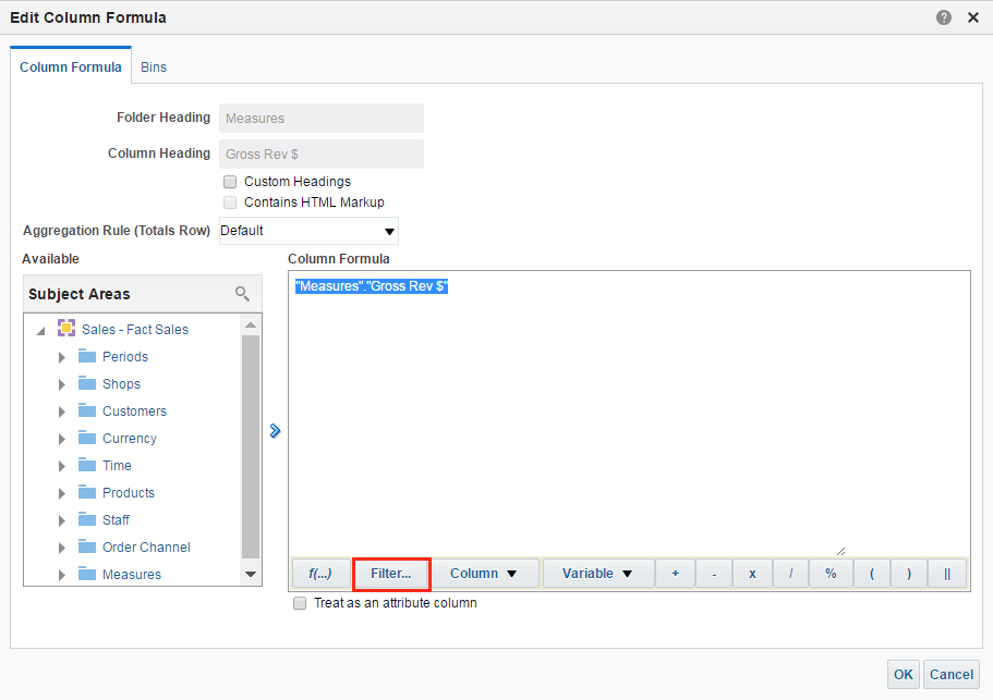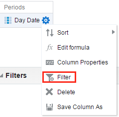 Note: When using a column formula filter for a measure, you can not add a global filter of the same data subject on top of it. For example, if using a column level filter for a particular Year and Month, I can not add a global filter for a particular year. The two filters contradict each other and the result will be null.