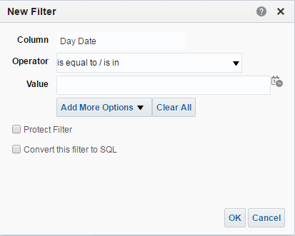 I need to add a filter to Day Date so that it returns only the values I want to user to select from.