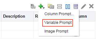To create a Variable Prompt for Start Date, I can click on the new prompt icon and select Variable Prompt.