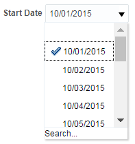 The blue checkmark indicates the value that is selected which, because the first date of every month was set by using the USMoBeginDate Repository Variable as the default value, defaults to the first date of the current month (October, 1st 2015) in this example.