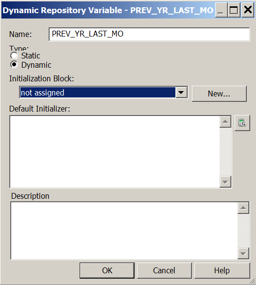 Going back to the Admin Tool, i'm going to create another Repository Variable and call it PREV_YR_LAST_MO