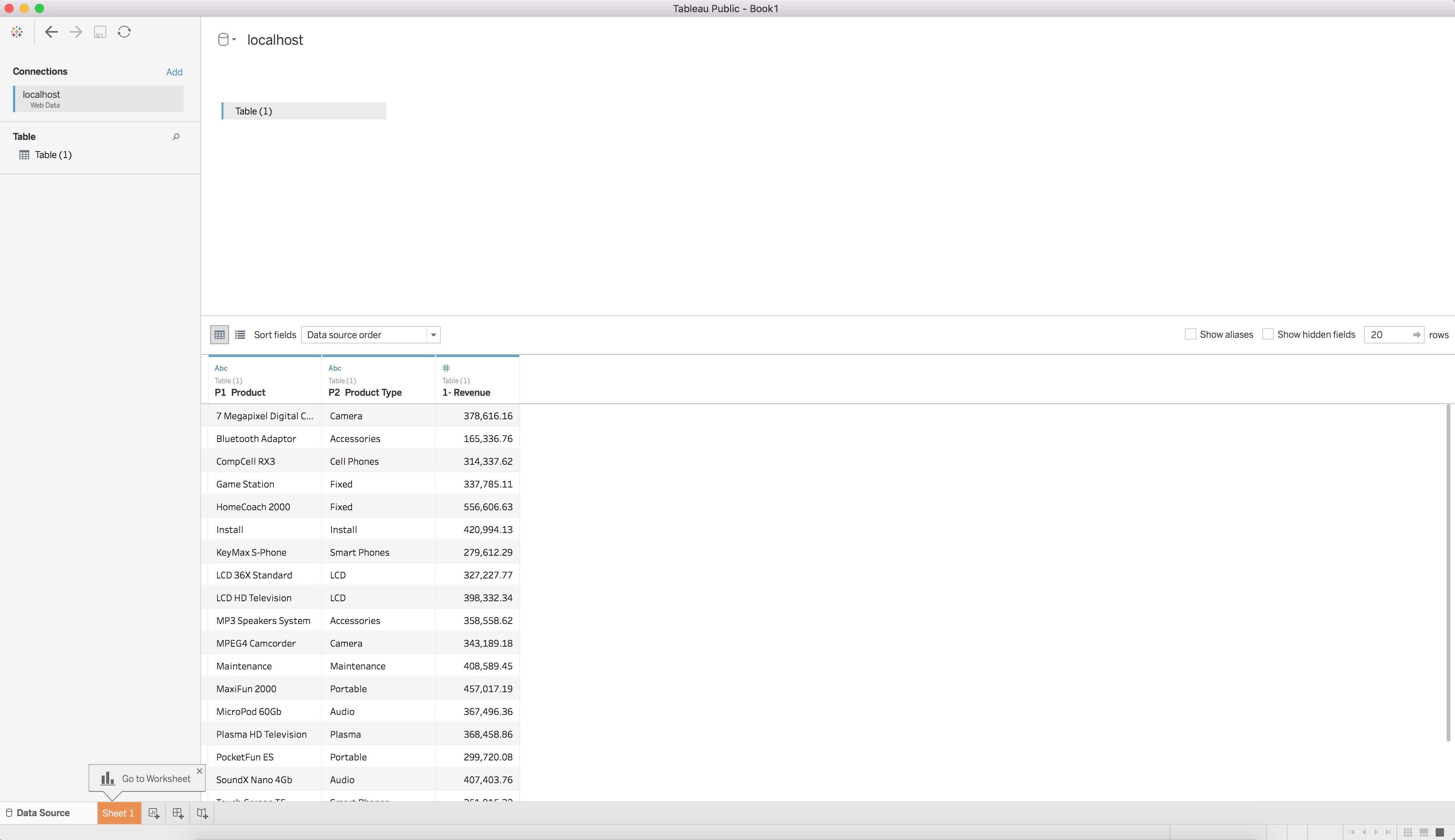 When this button is clicked, the Unify window will close and the query will execute. You will then be taken to a new Tableau Workbook with the results of the query as a Data Source. We can now use this query as a data source in Tableau, just as we would with any other data source.