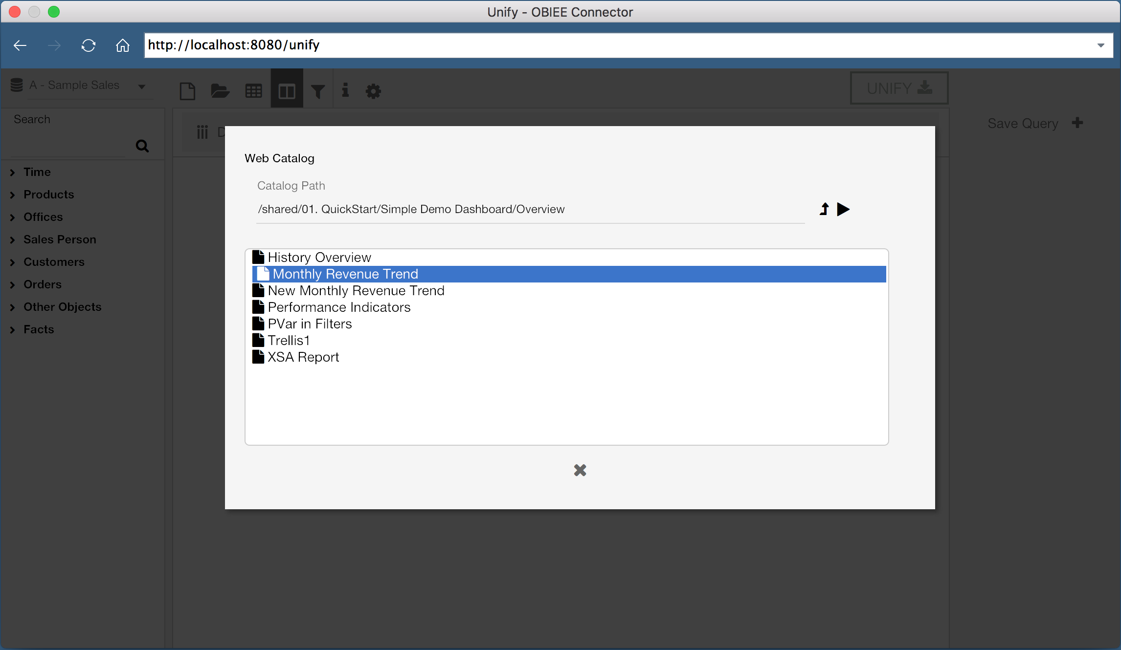 But what if we have existing reports we want to use? Do we have to rebuild the report from scratch in the web data connector? Of course not! With Unify, you can select existing reports and pull them directly into Tableau.