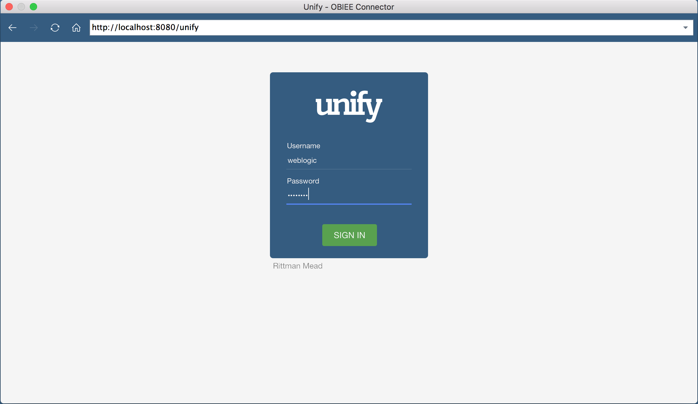 Once we put in the URL, we’re shown an authentication screen. This screen will allow us to authenticate against OBIEE using the same credentials. In this case, I will authenticate as the weblogic user.