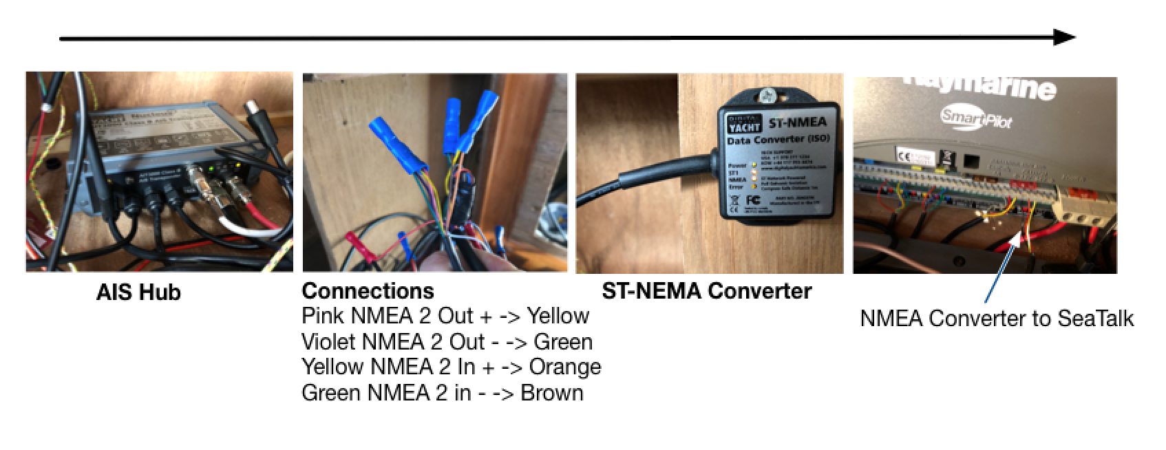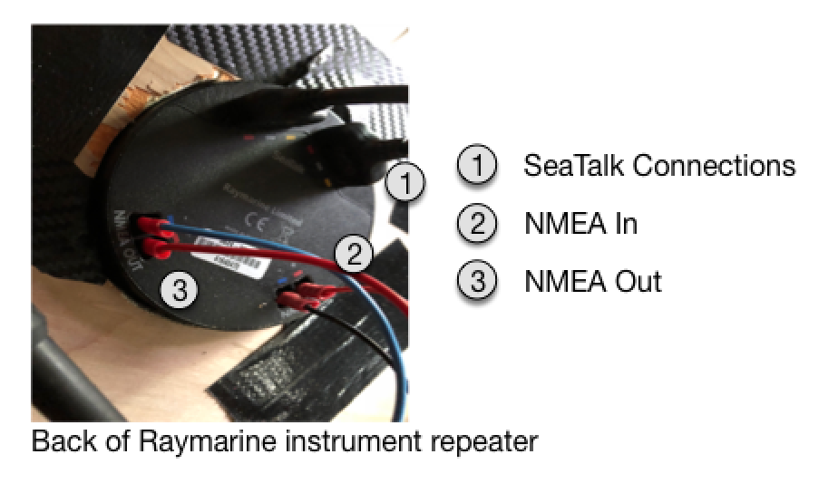 The existing setup takes data directly from the back of a Raymarine instrument seen below and gets linked into the AIS hub.
