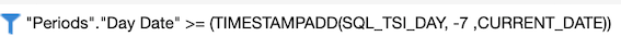 Starting to build our demo, the filter below returns all dates greater than or equal to 7 days ago including the current date.