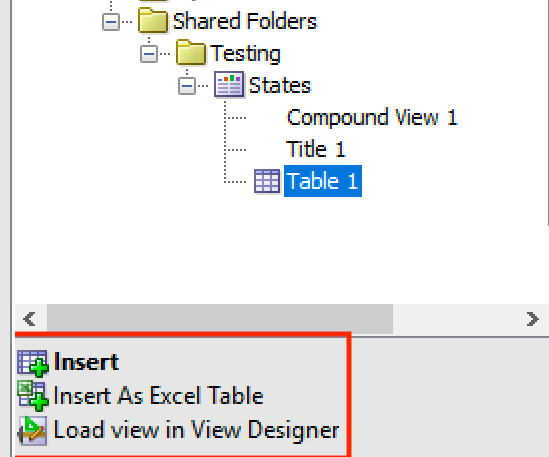 If you select a View you will get a number of options of how to display it, the simplest is insert.