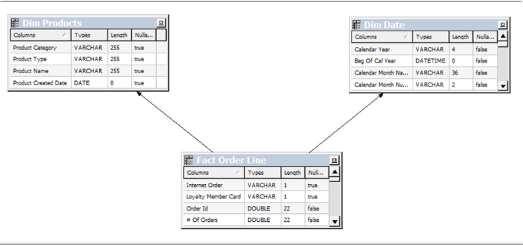 The Physical Diagram join also gives you an expression editor to manually write SQL for the join you want to perform on desired columns, introducing complexity and flexibility to customise the nature of the join. You can define complex joins, i.e. those over non-foreign key and primary key columns, using the expression editor rather than key column relationships. Complex joins are not as efficient, however, because they don’t use key column relationships.