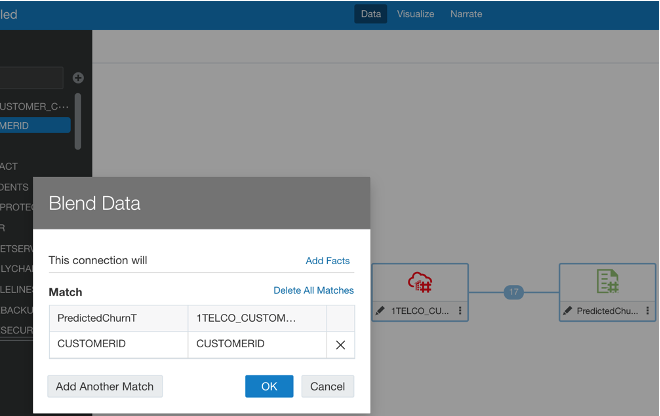 Lastly, let’s look at the newly added feature of OAC 6.0: Multi Table Datasets. Oracle have now made it possible to join several tables to create a new Data Set in DV.