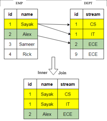 INNER JOIN DEPT ON DEPT.id = EMP.id;