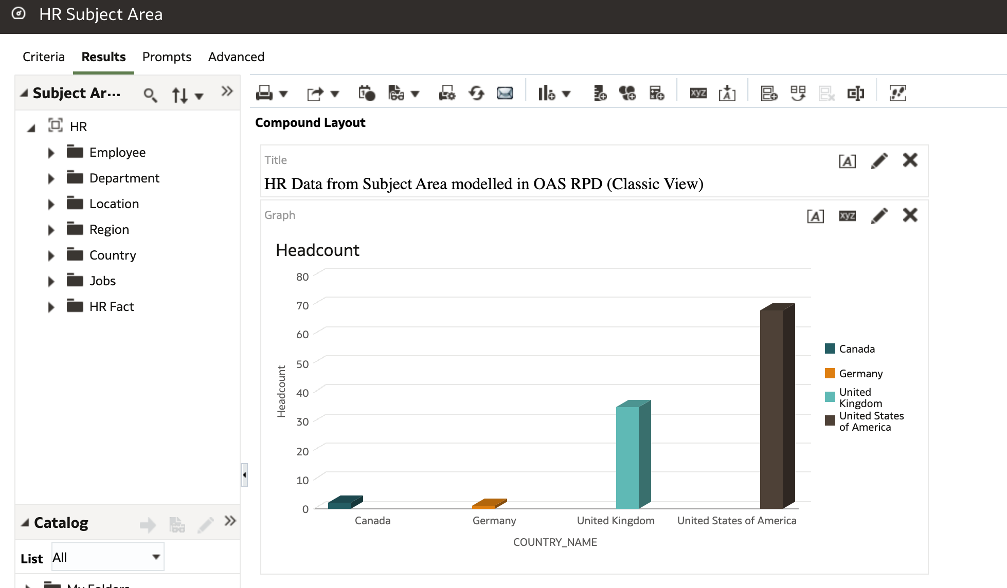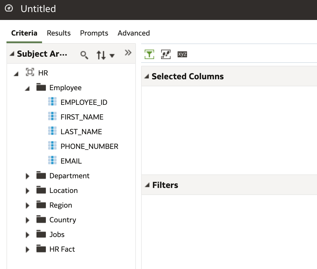 With the Criteria tab I could now create my OBIEE reports with the familiar interface using the HR Subject Area.