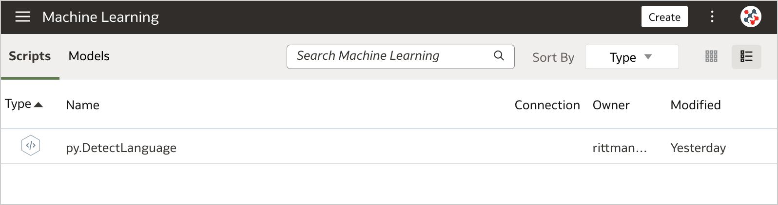 The uploaded custom script is now available for use and displayed in the Scripts tab on the Machine Learning page.