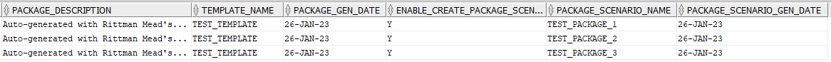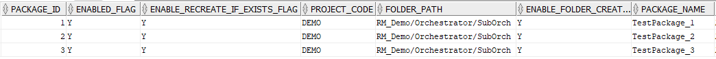 In the main Package metadata table we will have one record per Package to be created (shown here are 3 records but split in two because of the number of columns):