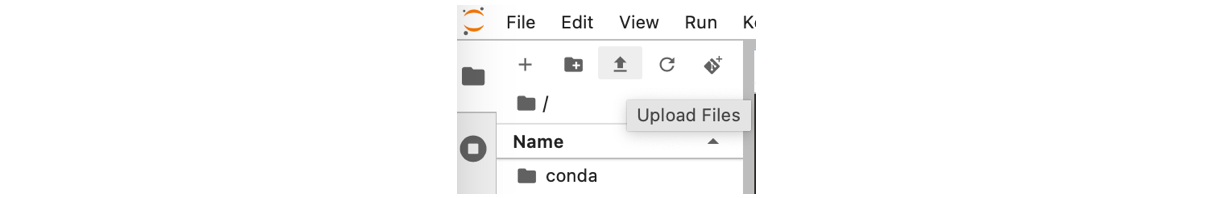 From your Notebook Session you can then upload this zip file either by dragging and dropping it into the file browser, or clicking upload: (for how to create a notebook session please see Part 1 here).