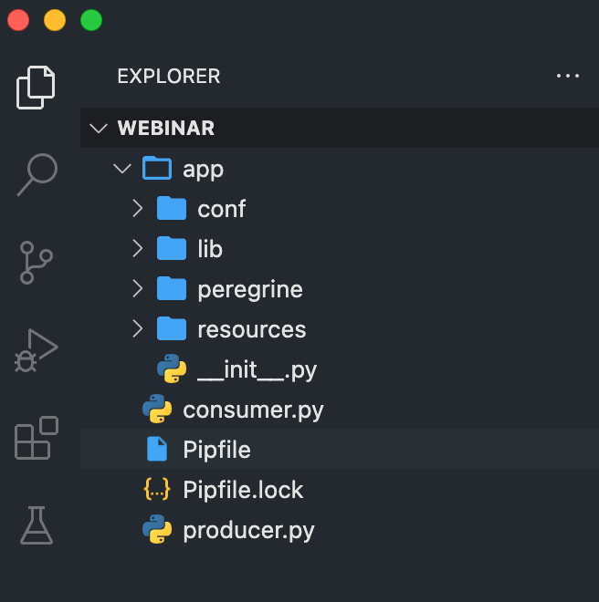 As part of our development principles, we create Python applications with a specific structure that makes code easier to read and organise. If you use Visual Studio Code, you could have a structure similar to this:
