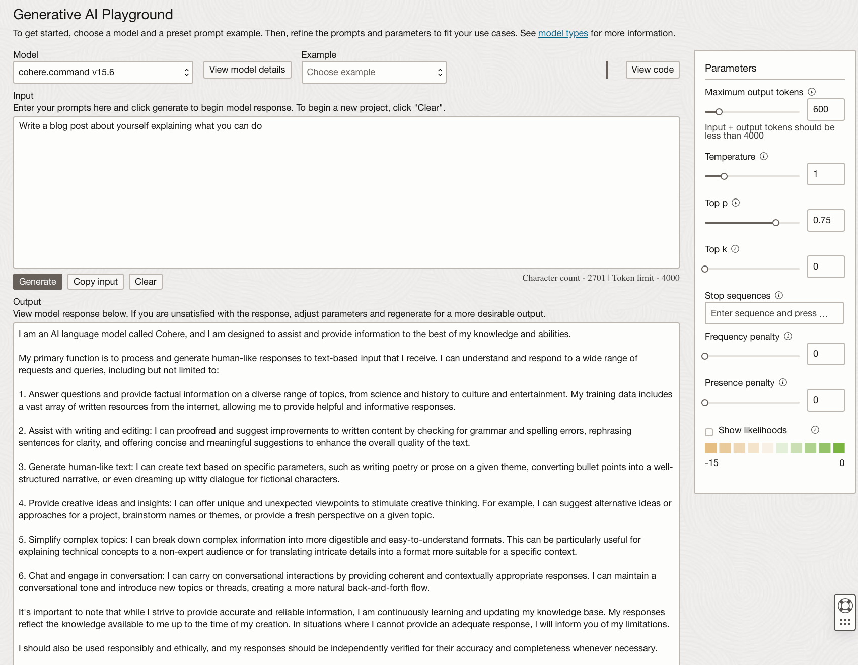 I hope this introductory blog post to Oracle Generative AI Services has piqued your interest and you are excited to give some of these models a go.