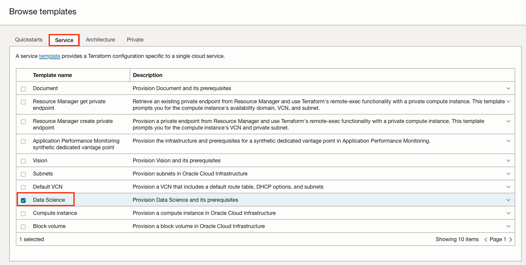 Under “Service”, select the “Data Science” Template.