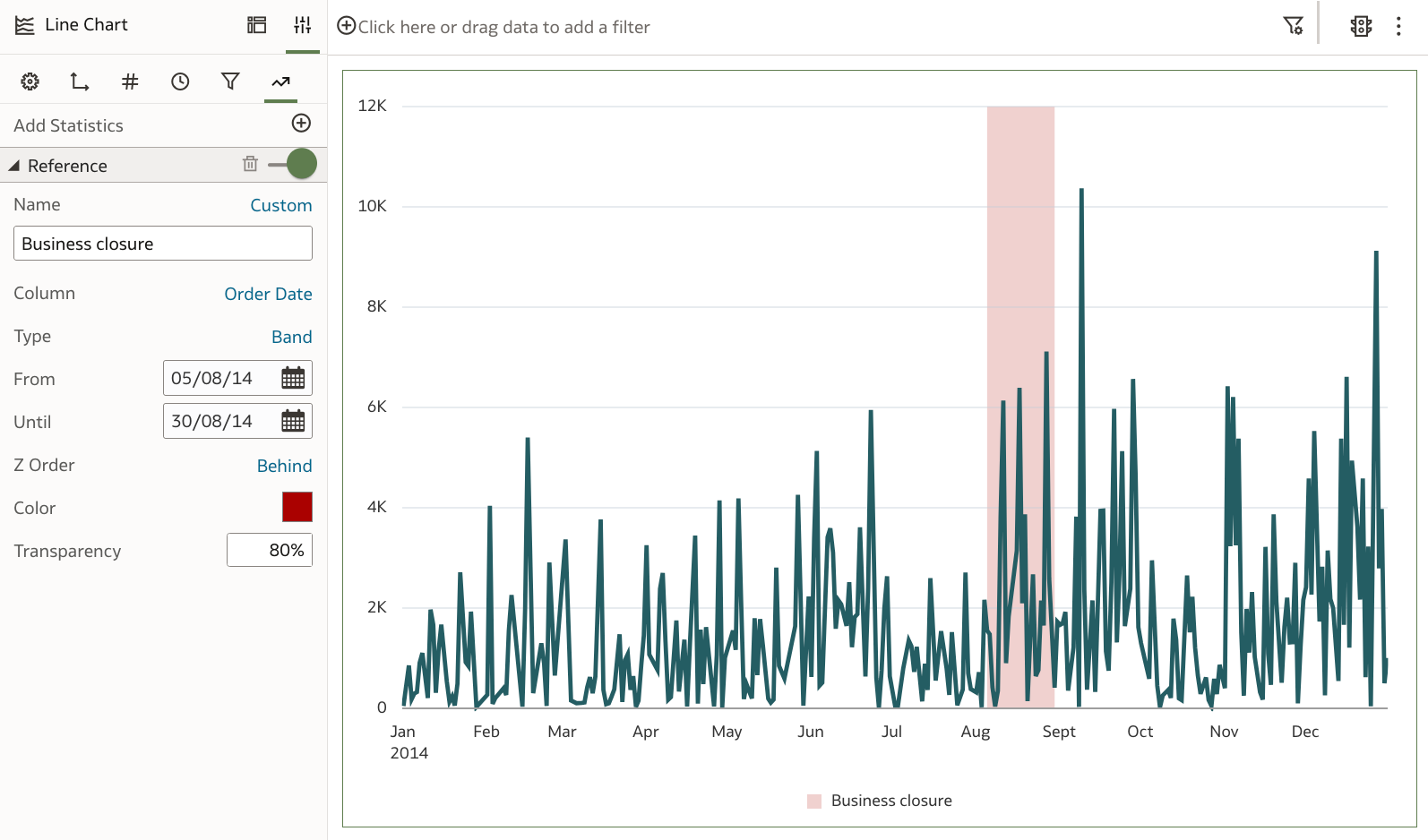Date and date-time columns can be used to draw and format reference lines to enrich Bar, Combo, Line and Area visualizations (Figure 8).