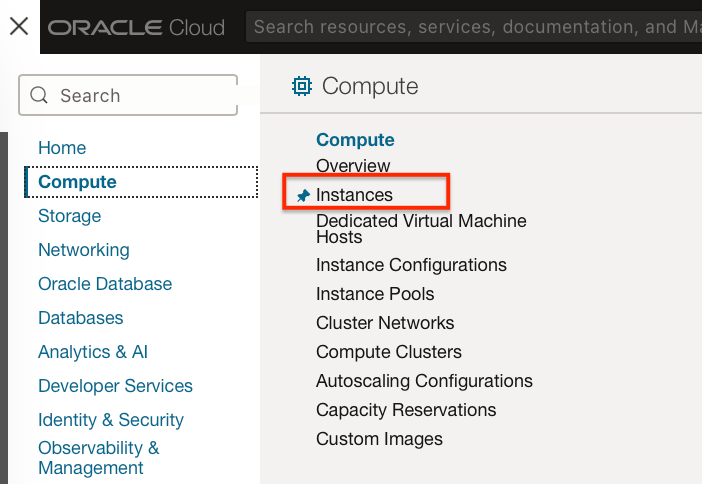 If you clicked close and need to know the URL, navigate to your compute instances, under Compute → Instances, and go to the compartment you chose in the setup steps above.