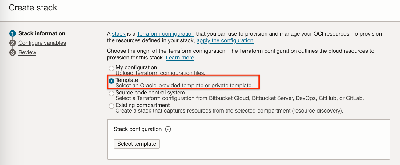 Navigate to Developer Services → Resource Manager → Stacks, change the compartment to correspond to where you wish the instance created to be located.