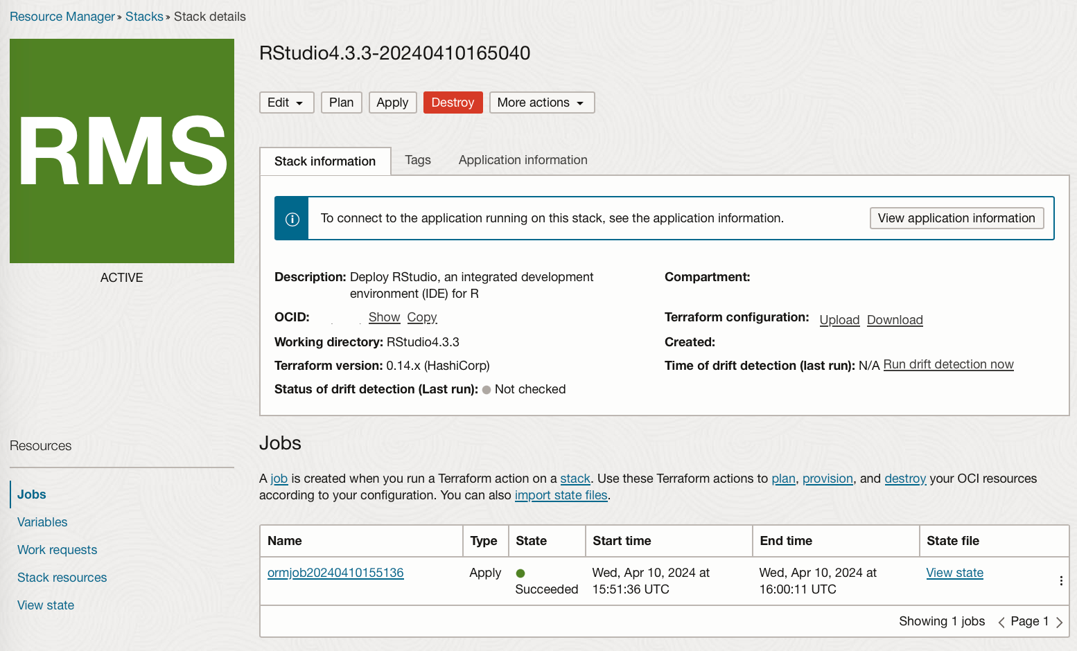 Clicking “Destroy” will then create a Destroy job.