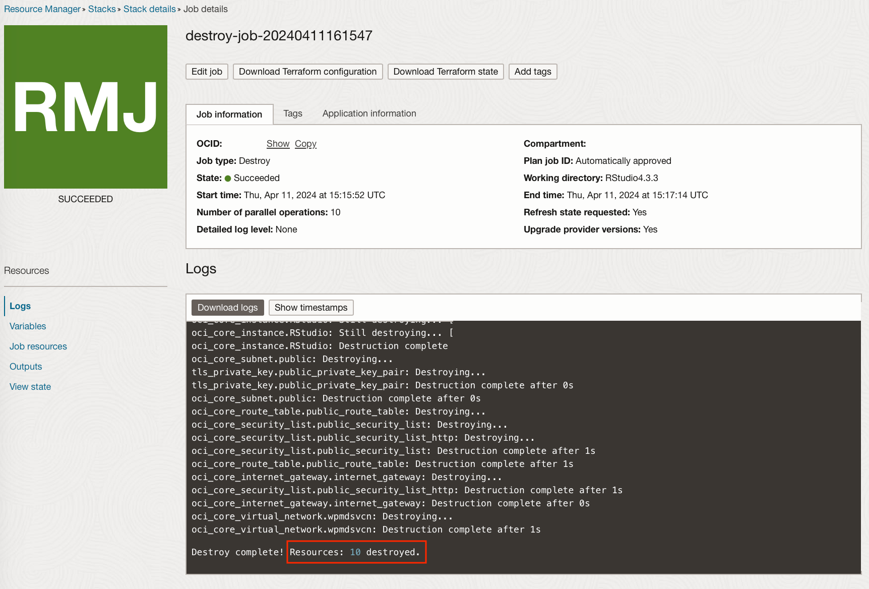 This will create a destroy job to delete all of these resources.