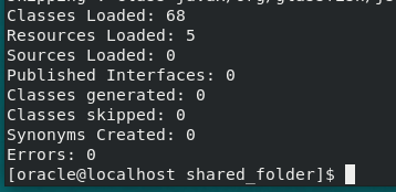 loadjava -thin -user OPENAI_TEST/OPENAI_TEST@localhost:1521/ORCLPDB1 -verbose -resolve -force /mnt/shared_folder/OpenAI4OracleDB.jarThe command will display informative error messages if any and will give a summary at the end: