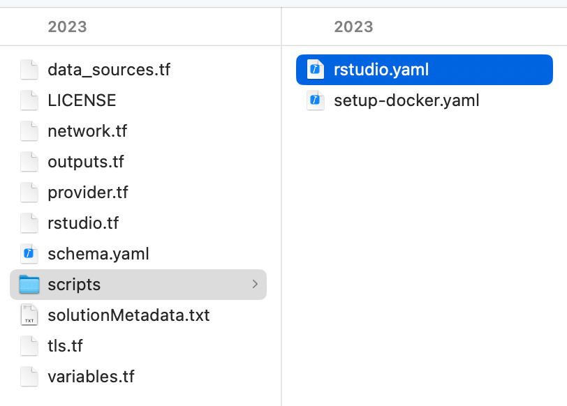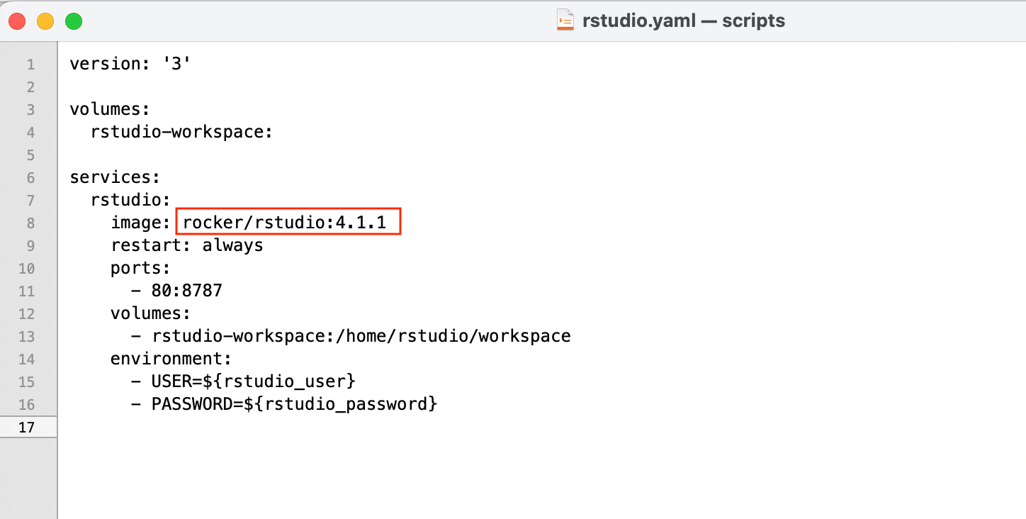 Within the downloaded template zip file, in the rstudio.yaml file we can see the docker image specified.