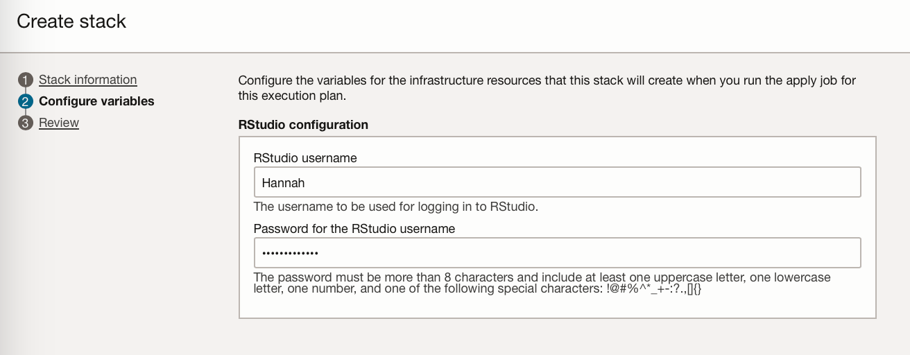 Click “Next” where you can specify the RStudio username and password.