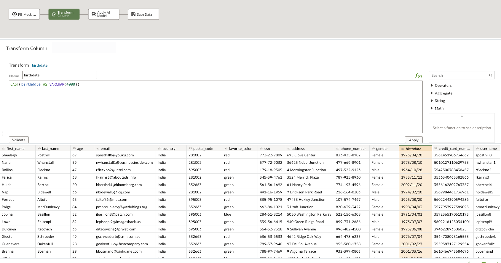 PII Detection & Obfuscation in Oracle Analytics Cloud Datasets