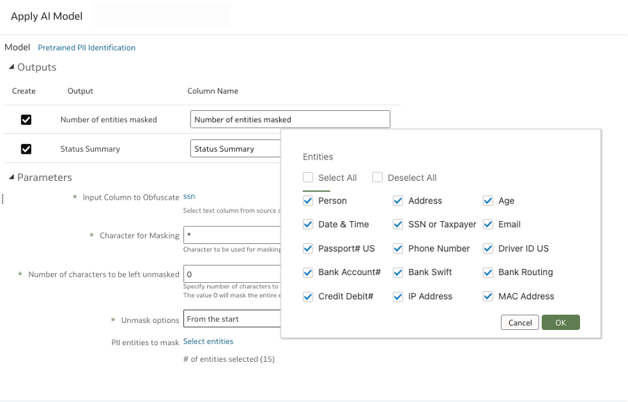 Pre-trained PII Model in Oracle Analytics Cloud